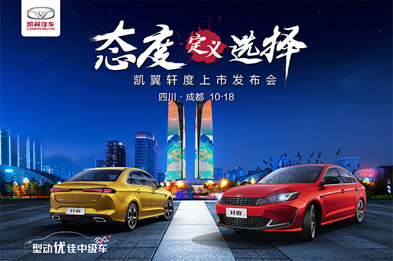 10月18日,弯道小酷侠——凯翼轩度全国上市。作为凯翼汽车首款运动型家轿,新车版型命名融入巴蜀文化特色,推出要得版、巴适版、安逸版、扎起版、雄起版、霸道版六款版型,并提供1.5T-MT、1.5T-CVT两种动力总成。官方指导价6.78万元——9.39万元。