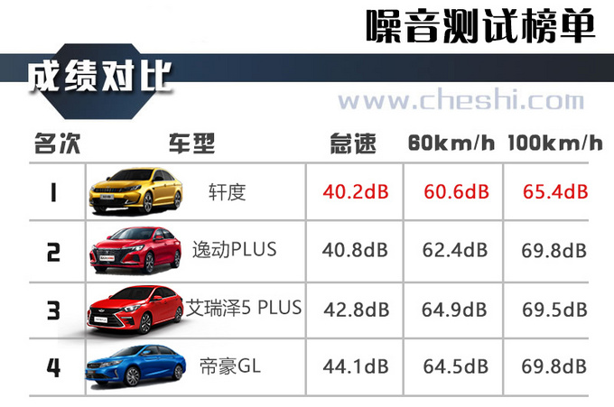 从数值上来看,测试车辆在怠速状态下噪音抑制的都相当不错,在车内几乎听不到发动机噪音,但当测试车辆跑起来后还是会有着明显的差距,其中轩度在60km/h、100km/h车速下,分别以75分贝、82分贝的成绩领先其他车辆,其车内的噪音最小,整体NVH性能更好。对于自主品牌车型能有如此优异的成绩还是很令人欣慰的,至少比同价位的合资车要好太多,这与自主品牌在车内材质用料上一向很厚道有着密不可分的关系。