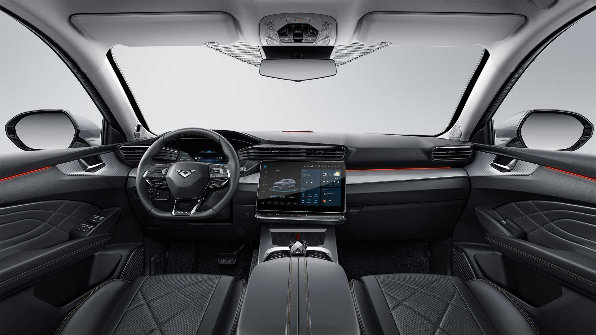 不仅外观设计上够“潮”, 凯翼昆仑在内饰、智能、动力、安全等使用体验感上也非常值得称道,真正做到了以用户需求为源点的价值逻辑,打造“和家一样幸福的移动空间”。内饰上,昆仑采用豪华游艇座舱设计理念,锚定每一位为家打拼的你。而水晶电子挡把、12.3英寸液晶仪表+14.6英寸液晶中控屏、影院级音响、64色多彩律动氛围灯等设计让整个内饰空间充满时尚感与科技感。