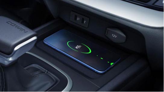 炫界还配备时下流行的手机无线快充功能,搭配QI认证无线快充技术支持安卓15w快充以及ios 7.5w快充,车主将手机放置充电槽便可充电,摆脱了传统充电必须有接口且须携带数据线的繁琐。充电功率高速度快,随时保持手机处于电量充足的状态,告别低电量焦虑症。