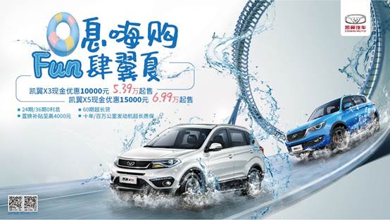 即日起购买凯翼X3或凯翼X5,不仅可享至高15000元的现金优惠,还可同时享受多项金融政策,可谓诚意满满: