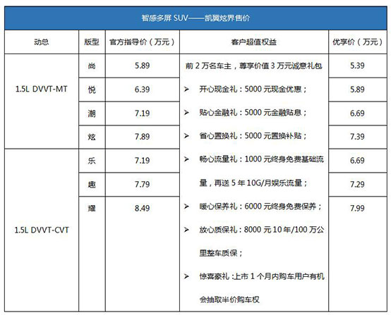 优享价5.39万—7.99万 凯翼炫界正式上市