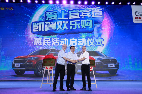 宜宾市政府副市长张健在讲话中指出,本次“爱上宜宾造 凯翼欢乐购”主题活动,正是落实省委“农业多贡献、工业挑大梁、投资唱主角、消费促升级”工作思路下的生动实践,是宜宾“产业发展双轮驱动”战略的有效落地。炫界是凯翼汽车落户宜宾后上市的首款全新车型,张健希望凯翼汽车在政府惠民补贴政策的春风下,完成战略性业务布局,打造宜宾城市新名片。市委市政府将坚定不移推进“产业发展双轮驱动”战略,加快培育壮大新兴产业,推动宜宾经济高质量发展。随着张健副市长宣布“爱上宜宾造 凯翼欢乐购”惠民活动正式启动,现场氛围达到了最高潮。