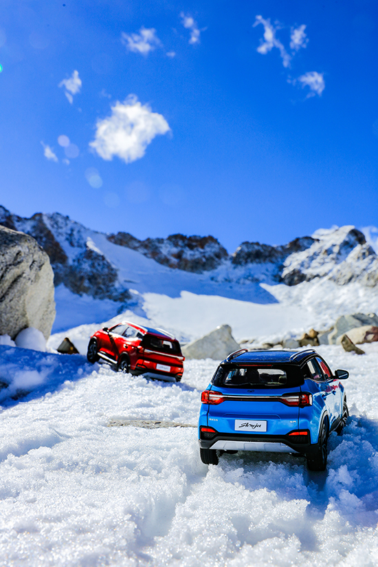 凯翼炫界可以进景区,但也没办法登顶达古冰川,这个时候,团队人肉背上来的炫界车模才终于派上了大用场。