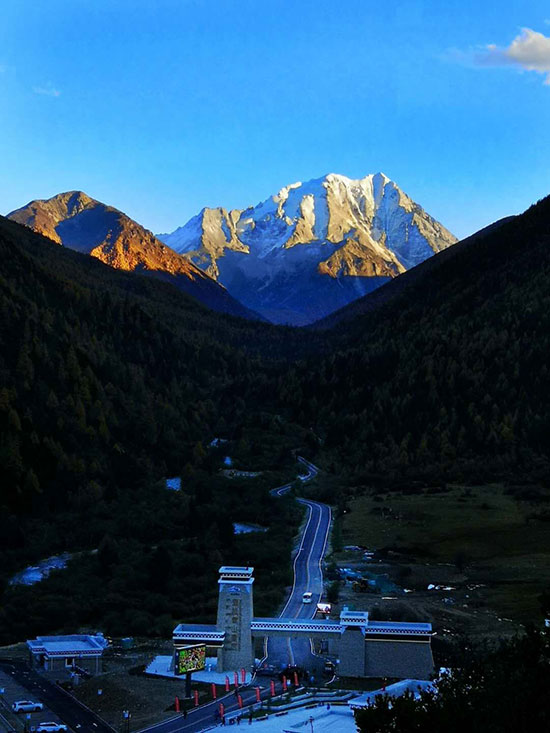 站在观景台上,日照金山映入眼帘,如此神性的景色壮美得让人忍不住想要大喊一声,让声音飘向雪山之巅,直达天地交汇之处。据说,能一睹雅拉雪山的真容是你的福气,或许这就是凯翼炫界所带来的好运气。