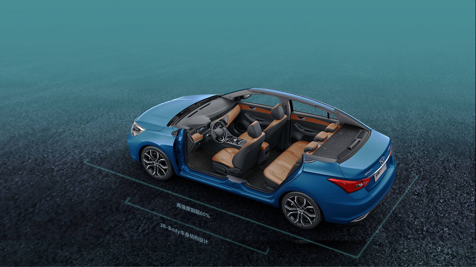 易损件强化加固、整车皮实耐用 五星安全碰撞标准设计,高强度钢用量超60% 3R-Body车身结构设计,专业研发轿车技术