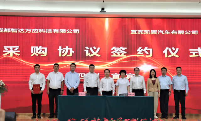 6月11日,宜宾凯翼汽车有限公司与成都智达万应科技有限公司签署战略合作及采购协议。市委常委、统战部部长陶学周出席签约仪式并致辞,二级巡视员、凯翼汽车党委书记胡明镜主持签约仪式,成都智达万应科技有限公司董事长王博详细介绍了双方合作情况。近年来,宜宾市紧紧围绕国家双碳战略部署和省委推动绿色低碳优势产业高质量发展的契机,大力发展智能终端、动力电池及新能源汽车等产业,产业支撑和生态集群效应明显增强。未来五年,宜宾市将按照习近平总书记来川来宜视察重要指示精神,紧扣加快建设社会主义现代化的区域中心城市和省域经济副中心