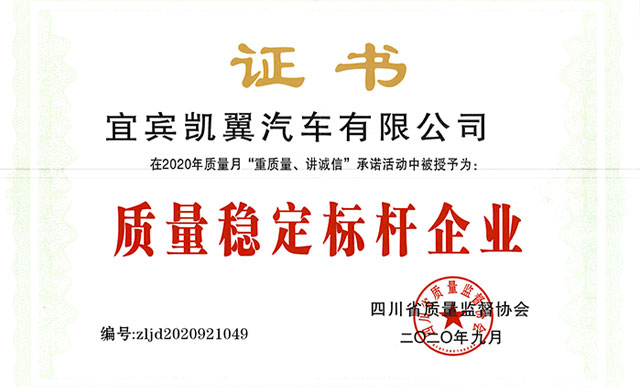 9月,市场监管总局联合中央宣传部、国家发展改革委、科技部、工业和信息化部、公安部、生态环境部、住房和城乡建设部、交通运输部、农业农村部、商务部、文化和旅游部、国家卫生健康委、人民银行、国务院国资委、海关总署等部门,共同部署开展2020年全国“质量月”活动。 凯翼汽车凭借可靠的产品品质,荣获“2020年四川省质量稳定标杆企业”。 质量是企业的生命线,关乎千千万万消费者的切身利益。