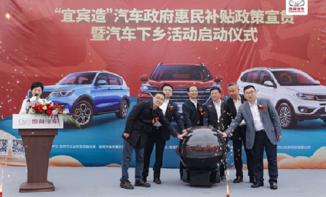 3月27日,“宜宾造”汽车政府惠民补贴政策宣贯暨汽车下乡启动仪式在宜宾市兴文县正式举行。 宜宾市政府副秘书长朱志刚,市政务服务和非公经济发展局党委书记、局长王青春,兴文县常务副县长罗庆,宜宾凯翼汽车有限公司总经理高雷等到场出席了活动。 据了解,为加快汽车产业发展,支持“宜宾造”汽车扩大市场影响力,宜宾市政府出台了针对企业经营和个人购车一系列惠民补贴政策,惠及宜宾千家万户,让宜宾人的出行方式更便捷、生活更美好。