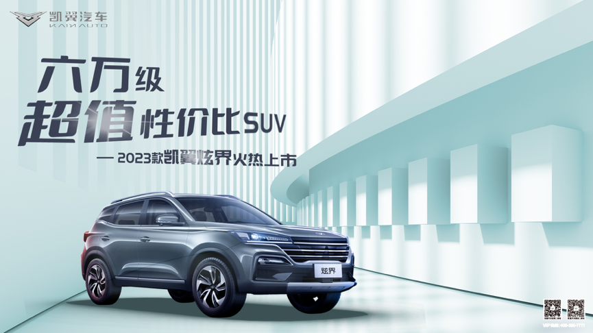伴随消费者主权时代的阔步深入,汽车市场需求水涨船高。在SUV细分领域,消费者不仅仅满足于高通过性、高视野的传统车型优势,更对车型的全方位感官体验提出高阶要求。凯翼2023款炫界就是这样的诚意之作,以四项升级、七项优化的豪华装配为年轻消费者提供奢享体验。2023款炫界提供四款车型,包括惠享版、乐享版、优享版、尊享版。官方指导价6.49万元--8.09万元。2023款炫界车型惠享版乐享版优享版尊享版官方指导价(万元)6.497.297.298.09四项核心升级2023款炫界全维度进阶2023款炫界在外观、舒适