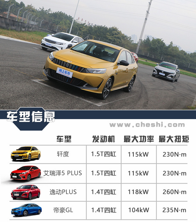 从轩度的定位和售价来看,其主要竞争对手包括奇瑞艾瑞泽5 PLUS、长安逸动PLUS、吉利帝豪GL等一众国内主流紧凑型家轿,这些车型不仅个个实力出众,而且销量也一直居高不下。面对竞品车型的双重压力,轩度是否有足够的实力脱颖而出呢?为此,我们在成都南山汽车文化园专业场地和赛道上,特地设置有专业麋鹿测试、百公里直线加速、百公里直线制动、噪音测试以及颠簸挑战等环节,并且每个项目都是由同一专业教练驾驶完成。
