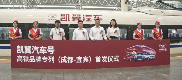 7月24日, “凯翼汽车号”C6665次列车正式驶出成都东站,标志着凯翼汽车成贵线高铁列车冠名首发仪式取得圆满成功。成贵线由四川出发,穿梭于川、云、贵三省,“凯翼汽车号”将成为流动的品牌名片。中国铁路成都局集团有限公司成都车站经开科刘影女士,凯翼汽车副总经理、销售公司总经理刘宏伟先生,凯翼销售公司副总经理陈剑先生共同出席此次首发仪式。