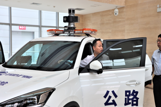 (市委常委、统战部部长陶学周查看公路检测车辆)