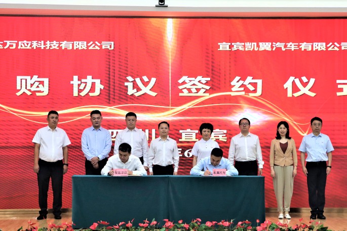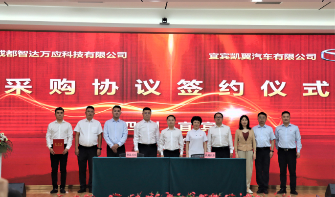 6月11日,宜宾凯翼汽车有限公司与成都智达万应科技有限公司签署战略合作及采购协议。市委常委、统战部部长陶学周出席签约仪式并致辞,二级巡视员、凯翼汽车党委书记胡明镜主持签约仪式,成都智达万应科技有限公司董事长王博详细介绍了双方合作情况。