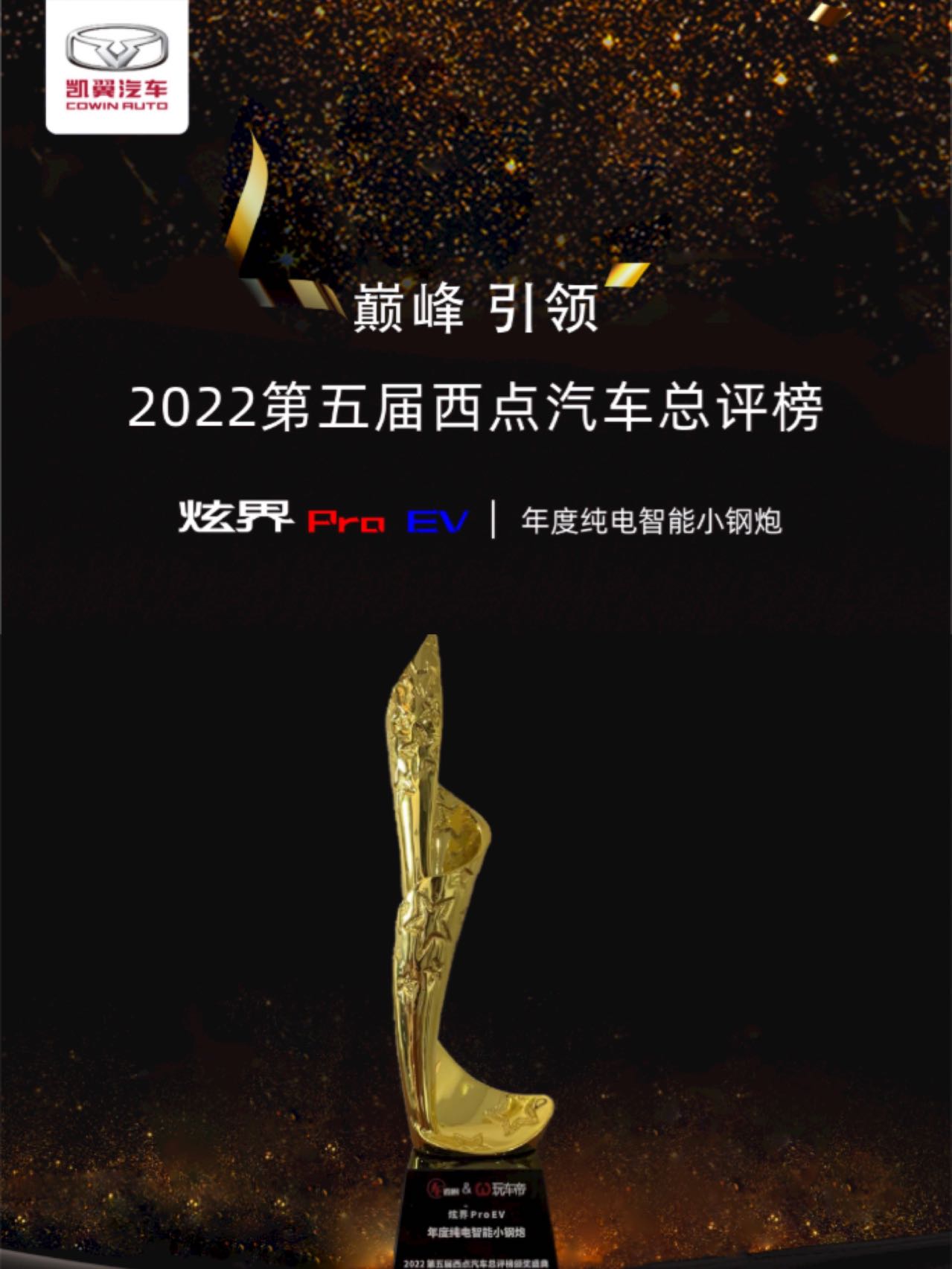凯翼汽车旗下新能源重磅产品炫界Pro EV荣膺“年度纯电智能小钢炮 ”大奖。炫界Pro EV是一款年轻时尚的智能纯电SUV,配备宁德时代磷酸铁锂电池,401KM超长续航;智能科技,双10.25吋酷炫双屏、超高清360°全景摄像头;外观运动、内饰精美,上市以来深受消费者欢迎,并于6月22日完成“电动宜宾 翼享生活”炫界Pro EV第一批500台出租车交付活动,助力“电动四川”。