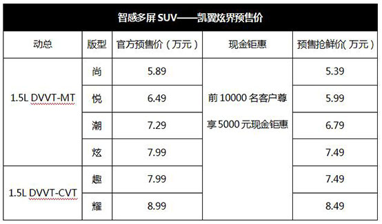 除惊喜的抢鲜价之外,即日至上市,客户还可尊享凯翼炫界6重大礼: