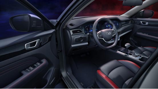 智能配置方面, 炫界配备10.25吋液晶仪表+10.25吋中控大屏,可将各类多媒体信息、来电号码直接映射到仪表盘上显示,实现多屏联动,内置隐藏式1080P高清智能行车记录仪;手机无线充电、智能语音交互等智能科技配置可给用户带来智能便捷的驾乘体验。