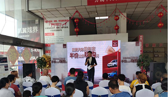 “凯翼汽车周年庆 半价炫界嗨购月”活动的前三期积攒了大量人气,本场活动作为凯翼汽车周年庆系列活动的的最后一期,参与活动的消费者情绪格外高涨,整个系列活动,凯翼汽车结合了每个城市的不同特色,通过表演、抽奖等丰富的互动形式,为广大消费者带来了福利满满的购车体验。活动中各地的经销商也在不断向消费者全面介绍各车型的细节和亮点,并且公布了一系列的购车钜惠政策,现场客户惊喜连连,积极互动,踊跃订购,多次掀起了购车热潮。