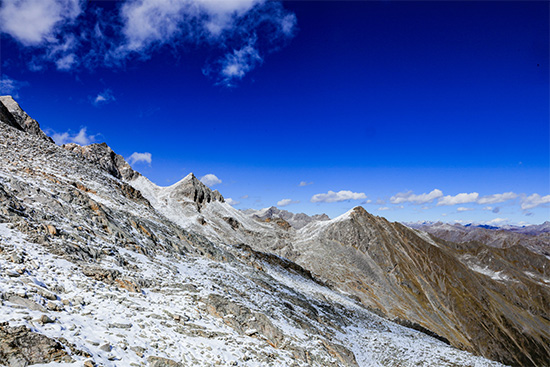 站在4860米的达古冰川极目远眺,川西重山一览无余,此时此刻,你只会觉得,任何烦恼在辽阔的山川湖海面前都不值一提。