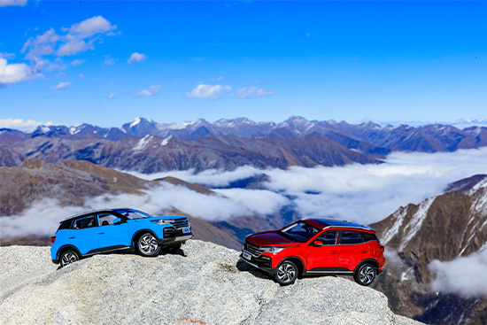 凯翼炫界可以进景区,但也没办法登顶达古冰川,这个时候,团队人肉背上来的炫界车模才终于派上了大用场。