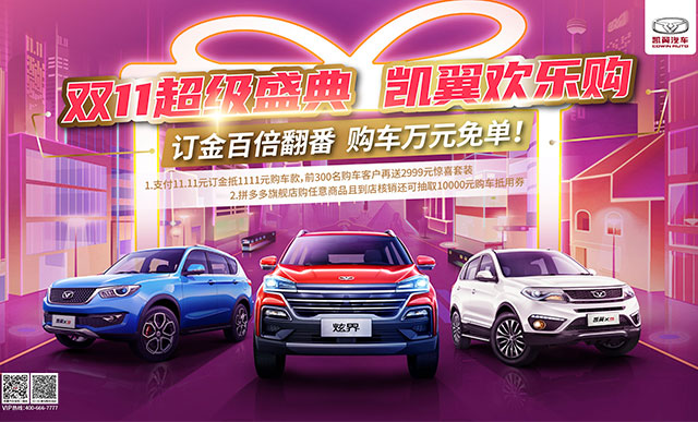 2020年双11超级盛典已经来临,凯翼更是拼尽全“利”,拒绝套路实力宠粉,推出多重优惠政策,只为让消费者能“价”享双十一。 为庆祝凯翼汽车拼多多旗舰店开业,凯翼汽车特推出“双11超级盛典 凯翼欢乐购”钜惠活动,联合线下近百家经销商金牌直播天团进行专场直播,开启“1+1+N”多轮玩法,线上线下深度融合,以声势浩大的钜惠活动征战双11,其促销政策不仅贯穿整个11月份且优惠力度空前,还等什么,瞄准时机赶紧下手吧。 凯翼超级直播盛典 ...
