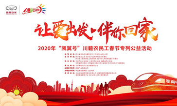 1月8日,由凯翼汽车有限公司战略支持的“让爱出发,伴你回家”2020年“凯翼号”川籍农民工春节专列公益活动,在北京、上海、南京、福州、南昌、成都六地举行了暖心的发车和接站仪式。 四川省劳务开发暨农民工工作领导小组办公室、四川省总工会、四川省人民政府驻北京/上海/厦门办事处、四川省有关市(州)驻当地联络处、四川省驻当地团工委、四川省司法厅等相关部门领导悉数莅临各地发车仪式。 ...